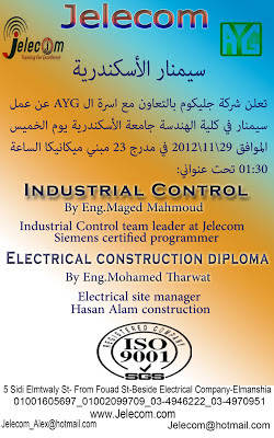 بمشيئة الله سيتم إنعقاد سمينارشركة ( Jelecom) الرائدة في مجال التدريب الهندسي والصناعي والحاصلة علي شهادة ISO – 9001 من شركة ( TUV) الألمانية.