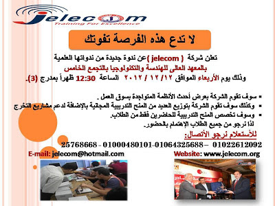 ***احصل علي عرووض خاصـــة جدا علي الدورات التدريبيه من Jelecom بحضورك الندوة العلمية المجانية ******